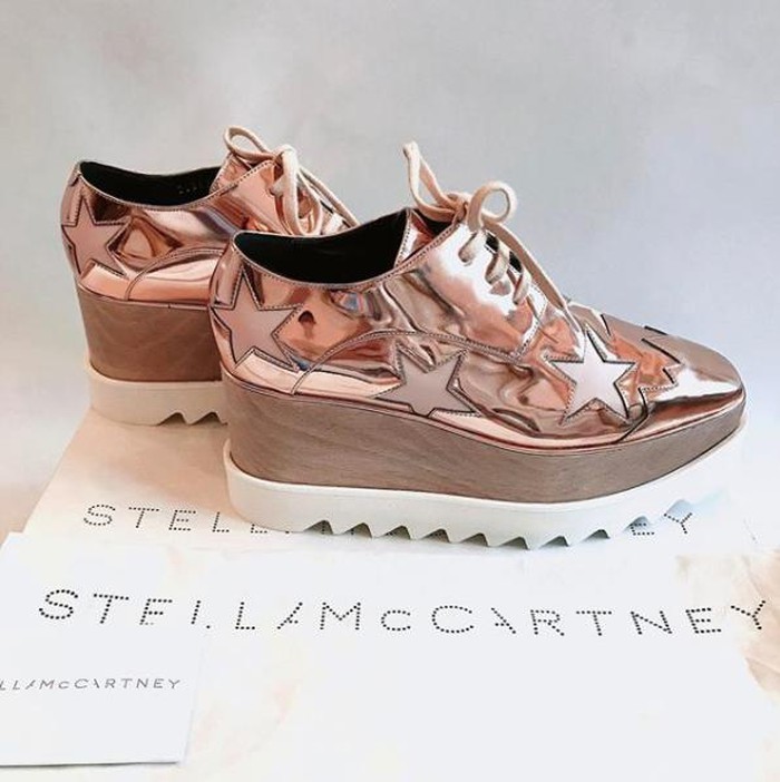Bộ sưu tập giầy của Quỳnh Anh đủ các kiểu dáng từ giầy thể thao, cao gót, giầy búp bê đến kiểu dáng độn đế chất chơi của Stella McCartney.