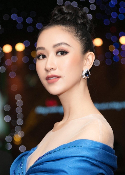 Trong khi đó Hà Thu gây ấn tượng với bộ dạ hội xanh dương tuyệt đẹp từng được cô lựa chọn trình diễn trong đêm chung kết Hoa hậu Trái đất Miss Earth 2017.