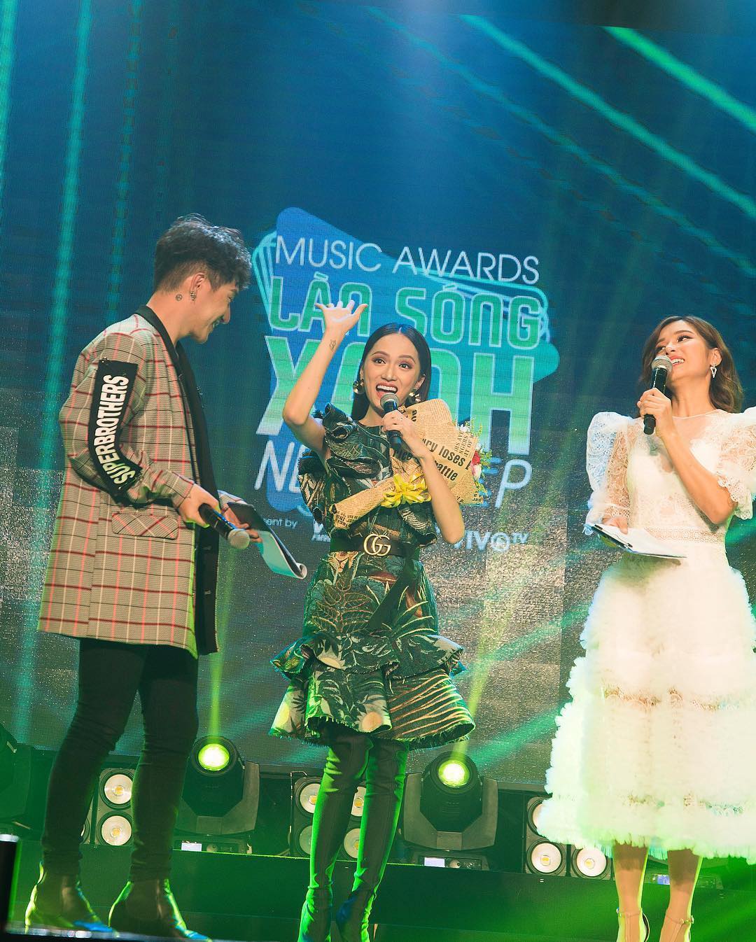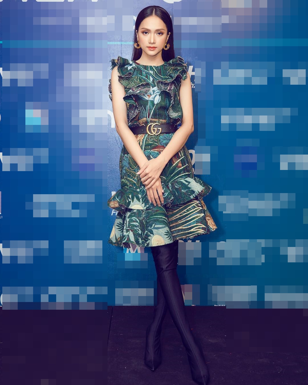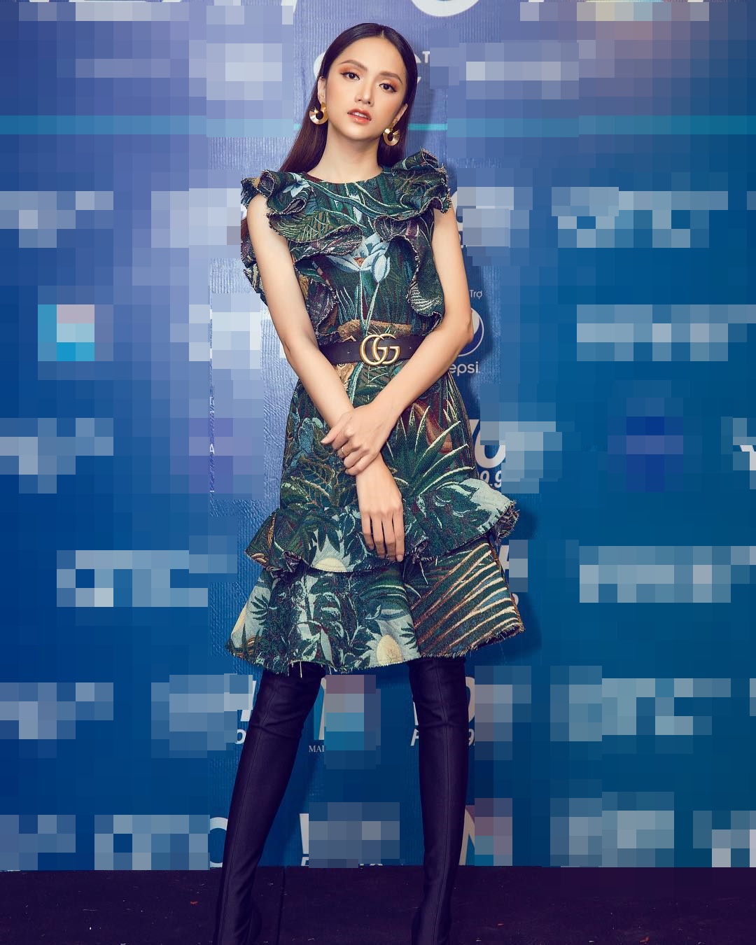 Trang phục 'kín mít' trừ trên xuống dưới nhìn cỏ vẻ lùm xùm nhưng nhờ vóc dáng thanh mảnh và thần thái xuất sắc, Hương Giang vẫn đẹp xuất thần.