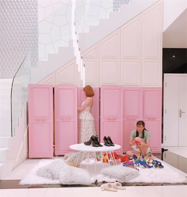Dù có đến 6 chiếc tủ đựng giày xinh yêu, nhưng có vẻ như để chứa hết các “bé con” của Trinh thì chẳng bao giờ là đủ.