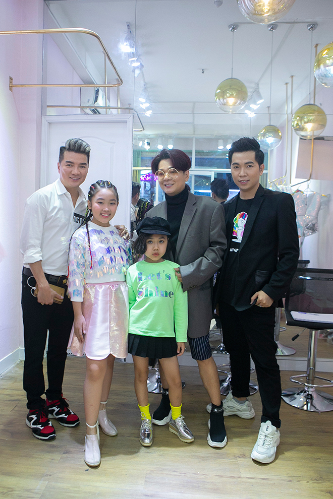 Cặp bạn thân 20 năm của làng nhạc Việt ăn diện với phong cách đối lập. Mẫu nhí Khánh An áo xanh đang là nhân tố nổi bật của làng thời trang