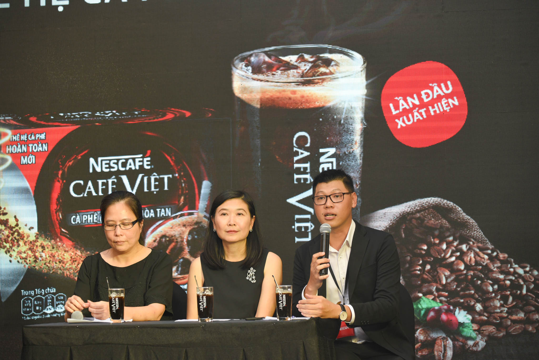 Đại diện nhãn hàng Nescafé Café Việt trả lời câu hỏi của truyền thông.