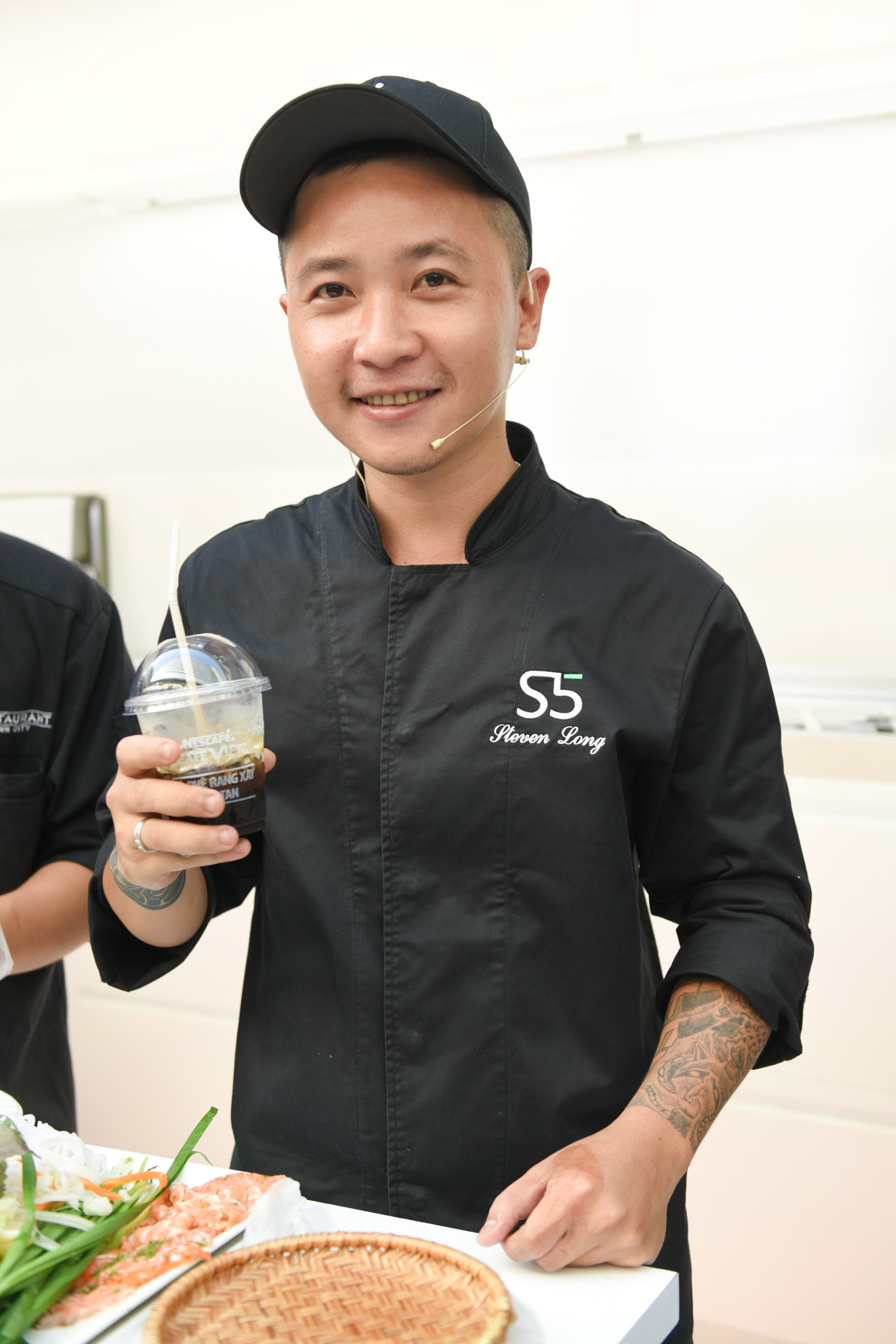 Đầu bếp Cẩm Thiên Long chia sẻ anh cảm thấy rất thích thế hệ cà phê cách tân mới Nescafé Café Việt Cà phê rang xay hòa tan bởi hương vị đắng nhẹ, mùi thơm nồng và ngọt hậu.