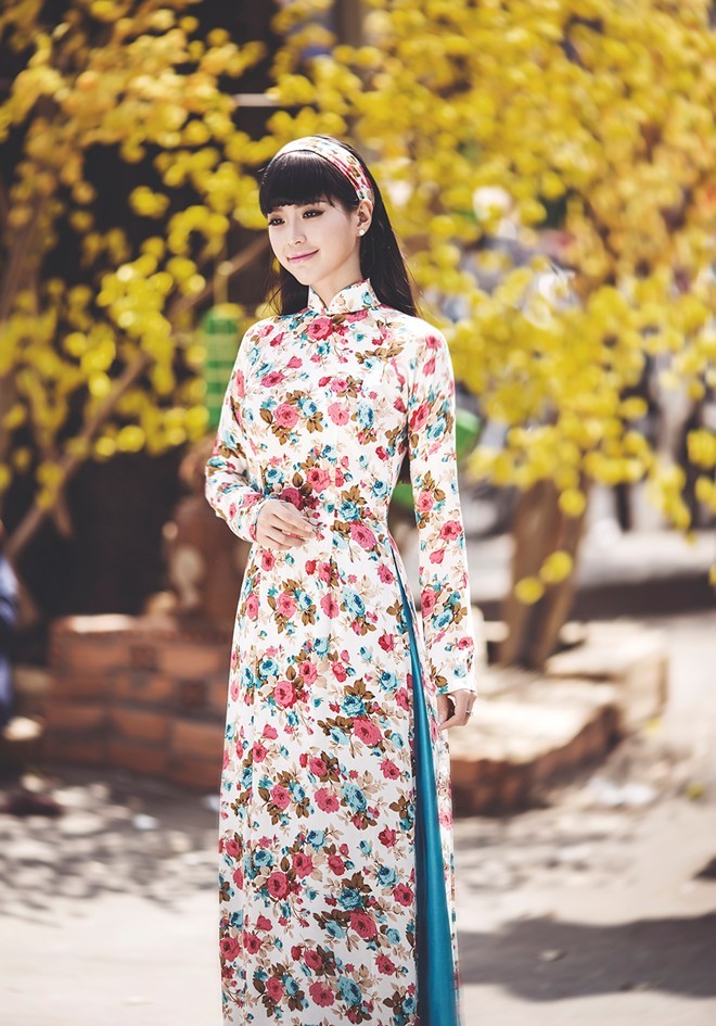 Đã có những mùa Xuân mà áo dài hoa được nhà nhà người người chọn mặc xuống phố, chụp ảnh kỉ niệm,…nhưng rồi lại trở thành “dĩ vãng”. Tuy nhiên, nếu trong khoảng tháng 10, tháng 11 năm nay người ta còn mê đắm với áo dài “Cô Ba Sài Gòn” thì đến những ngày giáp Tết này, áo dài họa tiết hoa lá có xu hướng quay trở lại và được không ít các sao Việt chọn mặc xuống phố trong những ngày cận Tết.