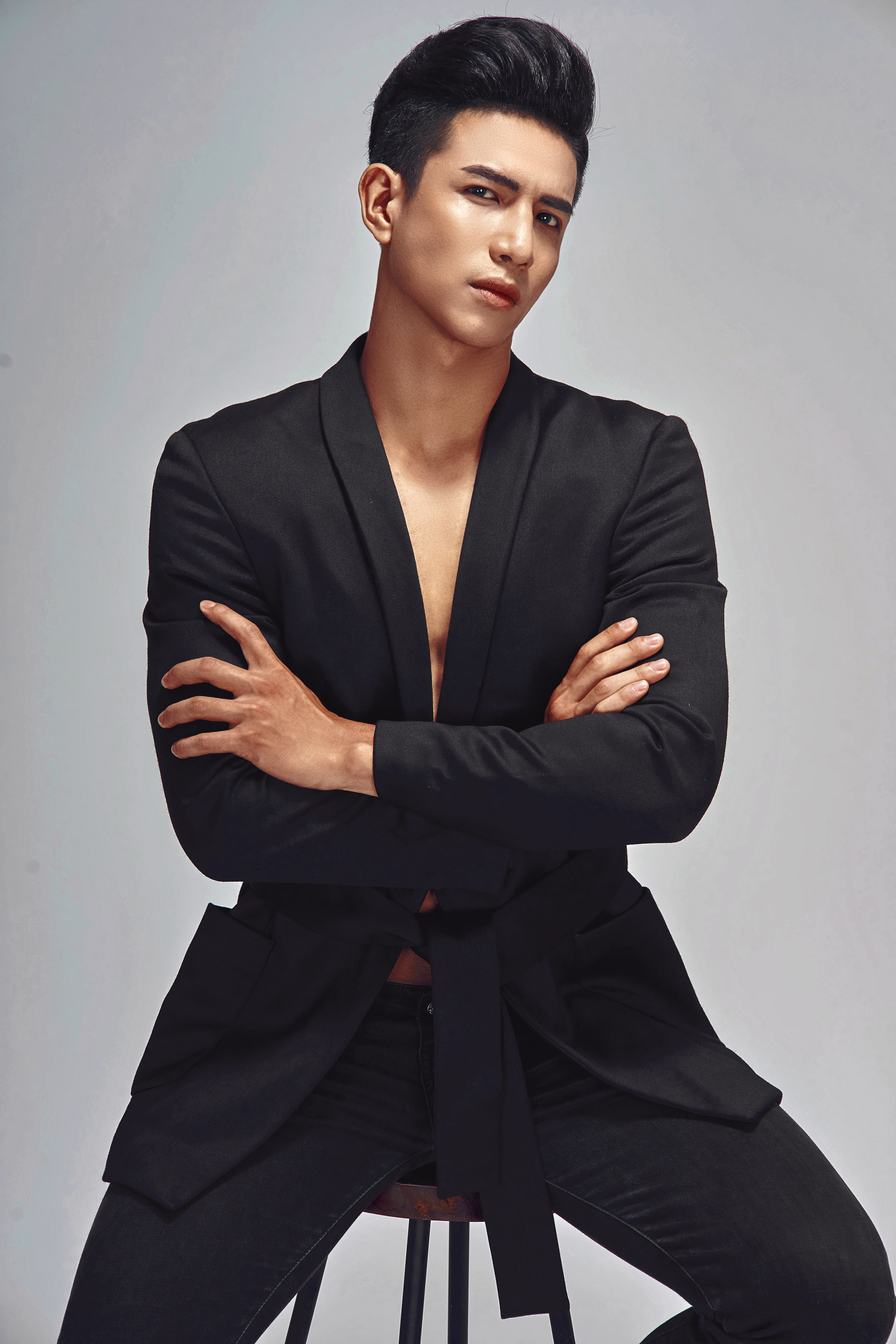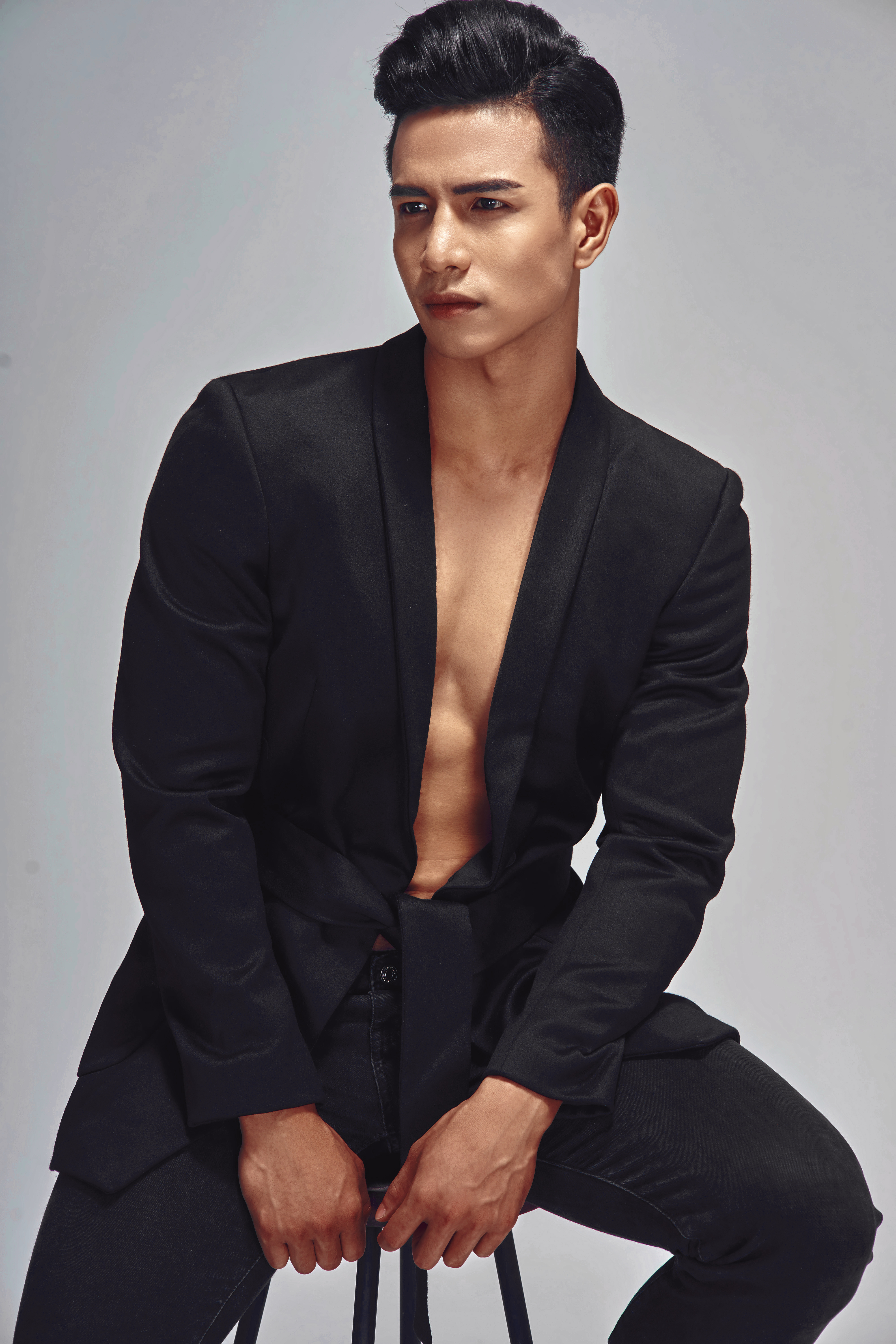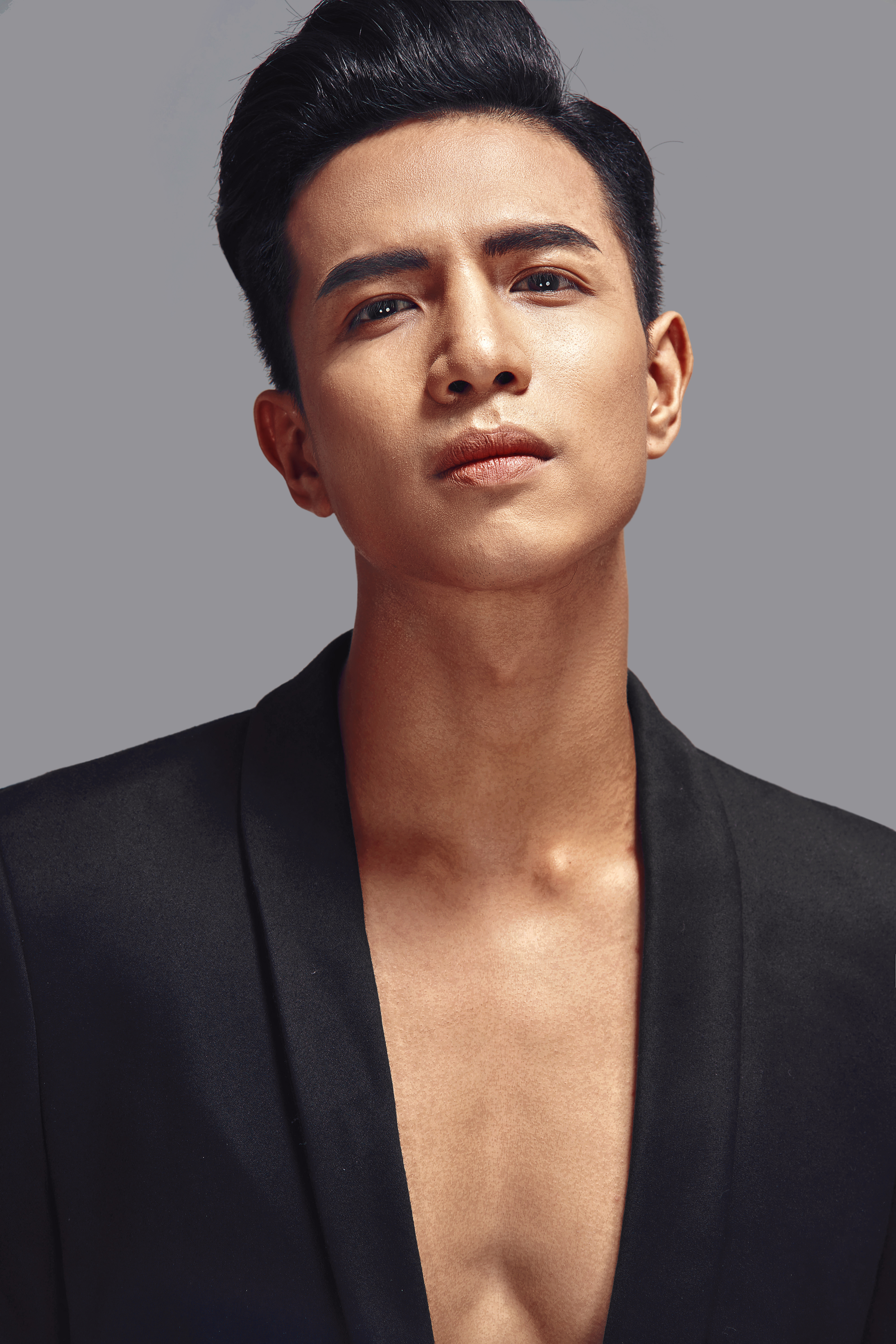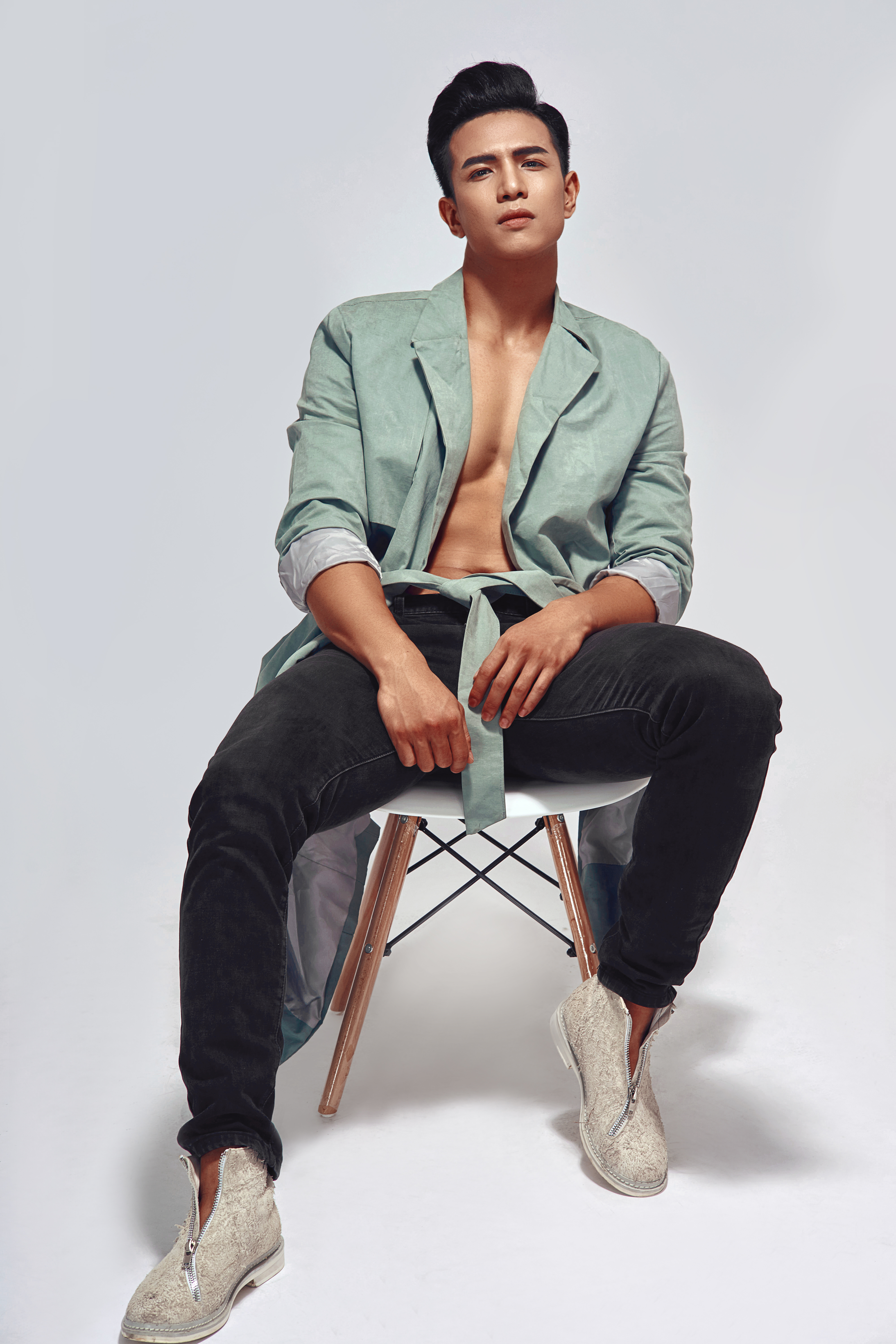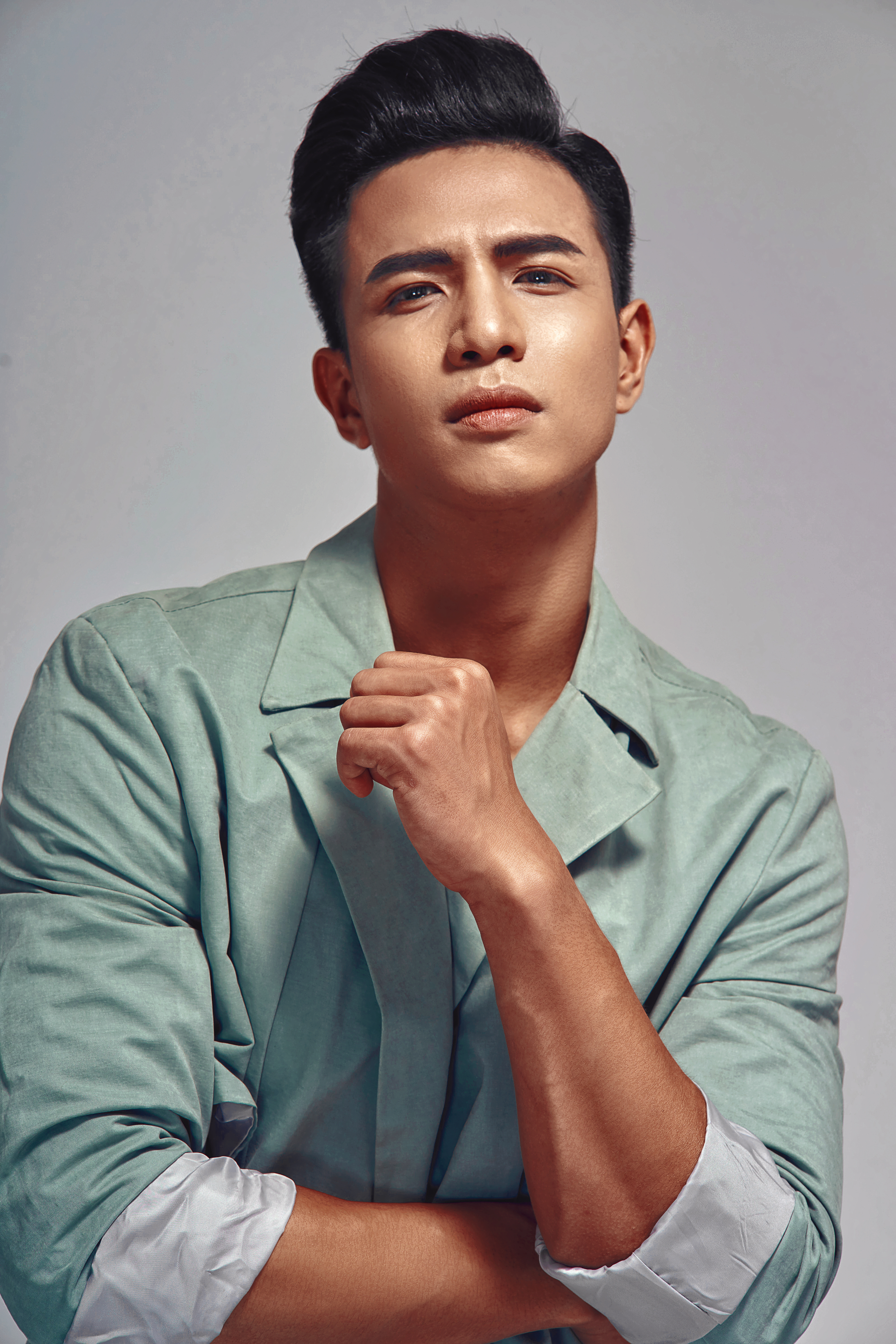 Để thể hiện sự nam tính, anh chàng không quá chú trọng vào tạo dáng mà tập trung vào việc sử dụng ánh mắt, thần thái.