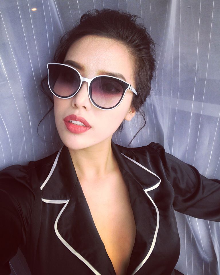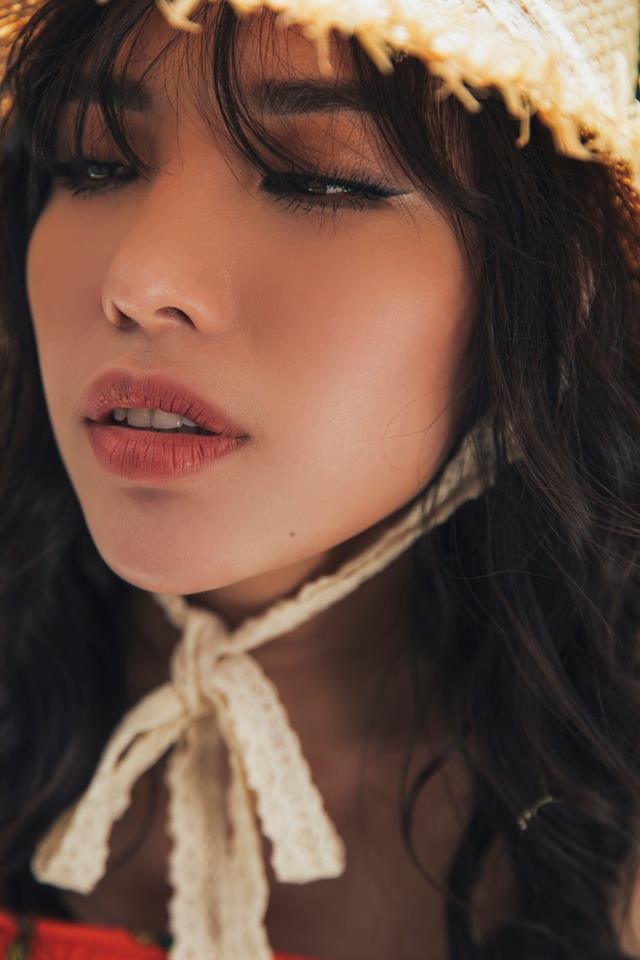 Cô tự tin khoe chiếc cằm V-line, cùng đôi môi tều gợi cảm.