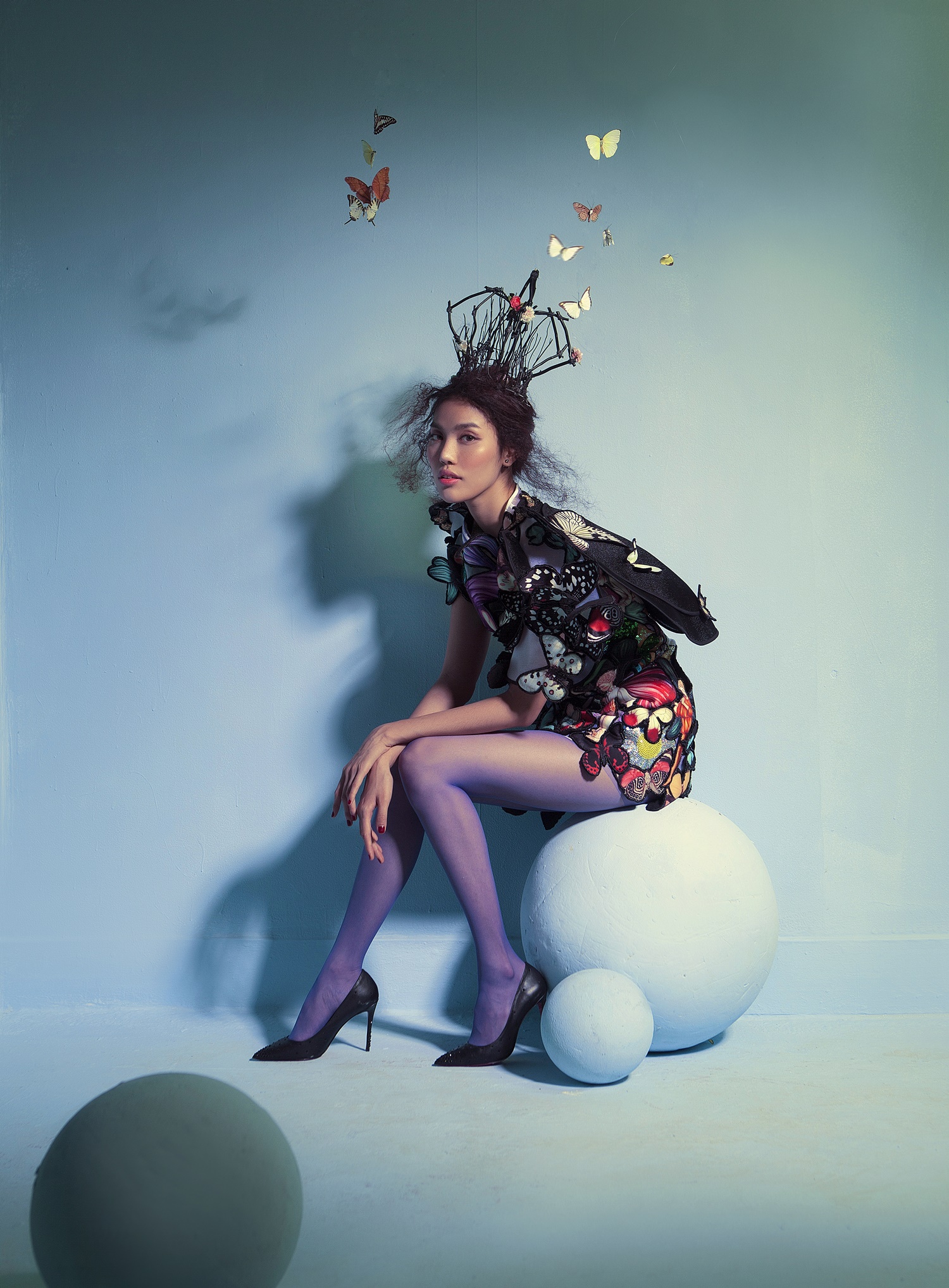 Sự tô điểm của những chú bướm đủ để “vườn xuân” của Hoàng Thùy trở nên cuốn hút, đầy mê hoặc.