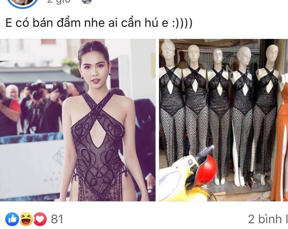 “Hiệu ứng” Ngọc Trinh tạo ra tại thảm đỏ LHP Cannes từ bộ cánh siêu hở hang là điều mà ai cũng thừa nhận. Nếu trên các trang mạng xã hội lẫn báo giới đang bàn tán xôn xao về chiếc váy được cho là chỉ có Ngọc Trinh mới dám mặc thì ở đâu đó chiếc váy đã được “nhân bản” và rao bán công khai.