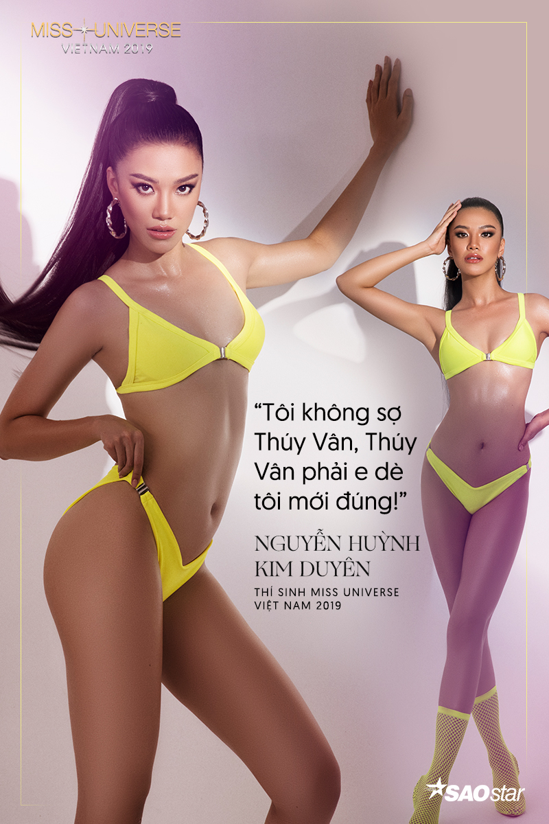 Ngay từ phút đầu xuất hiện tại sơ khảo Hoa hậu Hoàn vũ Việt Nam 2019, Kim Duyên đã được đánh giá là 'hổ chiến' ở đấu trường năm nay. Cô được khen nổi bật với vóc dáng săn chắc. Cùng với đó phần thi áo tắm và phỏng vấn Kim Duyên đều được ban giám khảo đánh giá cao.