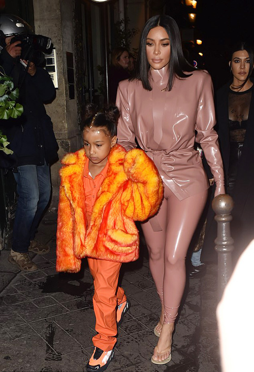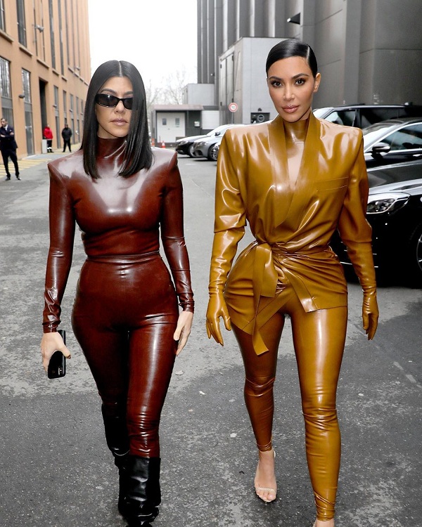 Kim Kardashian cùng chị gái Kourtney trong trang phục chất liệu latex xuất hiện tại Paris Fashion Week 2020 vừa qua