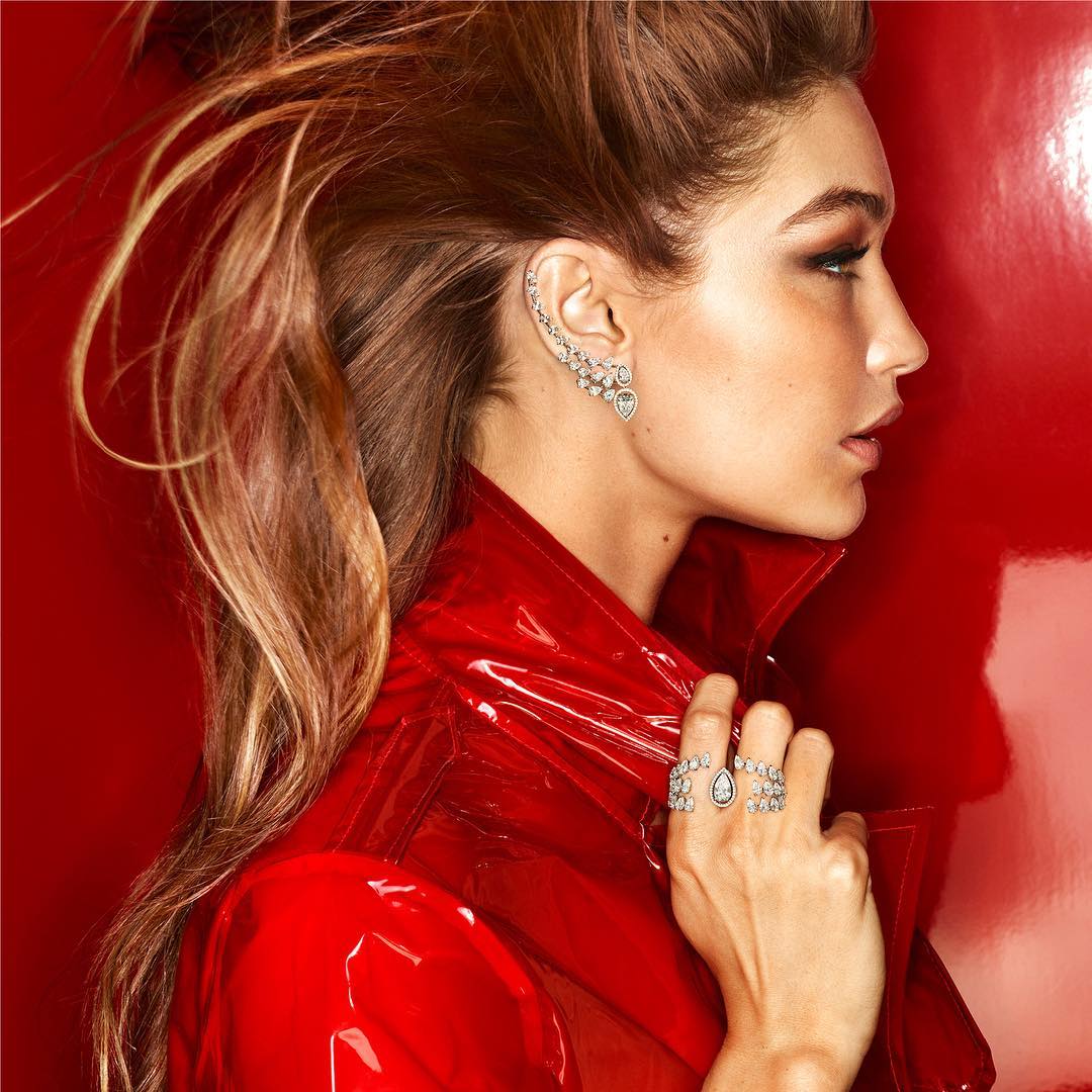 Gigi Hadid tiếp tục trở thành gương mặt đại diện cho một nhãn hàng trang sức. Với chiếc vòng cổ lấp lánh kim cương óng ánh càng làm nổi bật lên vẻ đẹp của cô.