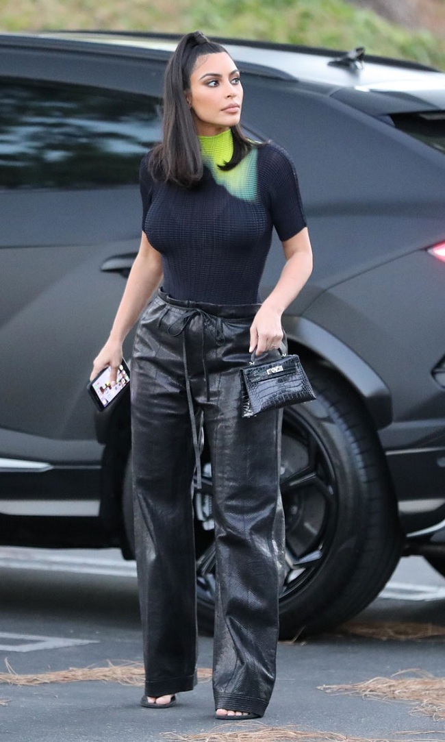 Kim Kardashian trước đó không lâu cũng khiến các tín đồ thời trang thích thú với chiếc túi mini Hermes Birkin chất liệu da cá sấu mà cô mix với trang phục khi đi gặp tổng thống Mỹ Donald Trump