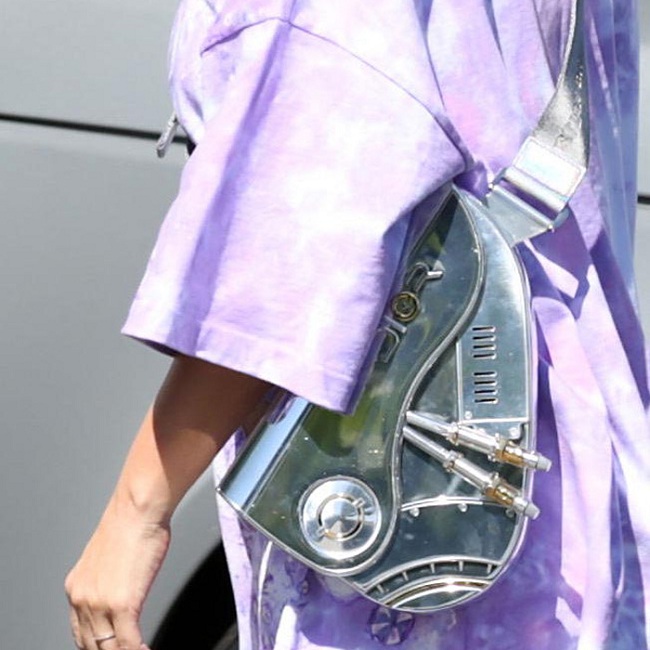 Kiểu túi Dior của Kim đeo trên người thuộc BST Dior x Sorayama Saddle . Đây là kiểu túi mà nhà mốt Pháp hợp tác cùng họa sĩ người Nhật Hajime Sorayama.