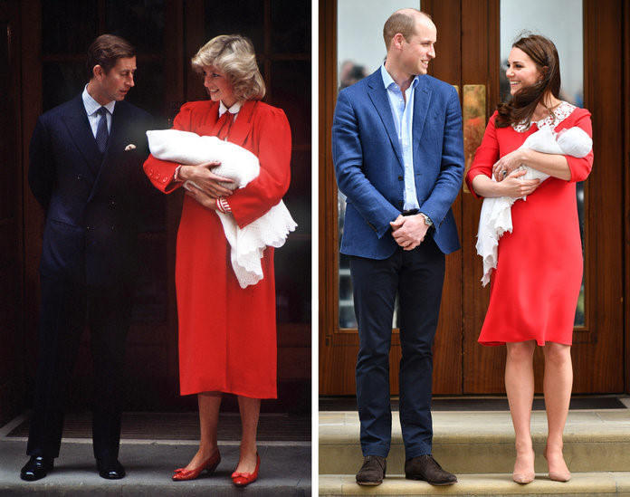 Sự kiện công nương Kate Middleton hạ sinh bé trai thứ ba thu hút sự quan tâm của toàn thế giới. Vào hôm 24/4 vừa qua, khi lần đầu “ra mắt” bé trai trước công chúng, Kate diện chiếc váy đỏ vô cùng nổi bật. Giới mộ điệu còn cho rằng bộ đầm đỏ của Kate có nhiều điểm tương đồng với trang phục Công nương Diana từng mặc khi chào đón Hoàng tử Harry ra đời (năm 1984). Dù đã qua đời, Công nương Diana vẫn được nhắc đến là biểu tượng thời trang của sự sang trọng và thanh lịch.