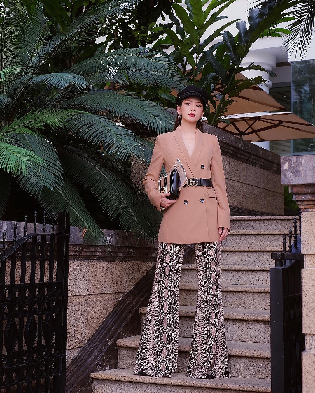 Không quá cao nhưng với cách diện đồ ăn gian chiều cao, Chi Pu thể hiện rõ hình thể chuẩn, chân dài miên man. Cách phối họa tiết nhưng không rối rắm của cô nàng cũng nhận được sự gật gù đồng tình của các tín đồ thời trang.