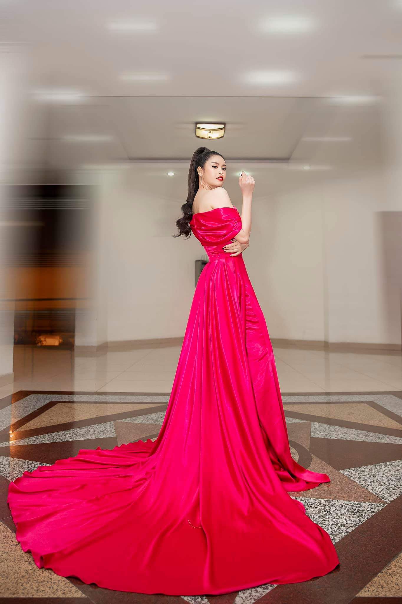 Những lớp vải phối mong manh càng làm tôn thêm nhan sắc quyến rũ, nét kiều diễm cho người đẹp đại diện Việt Nam tại Hoa hậu Hoàn vũ năm nay.