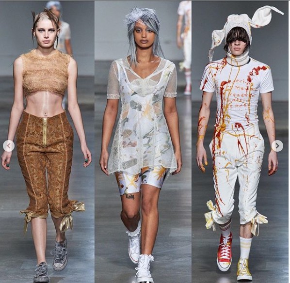Tại London Fashion Week 2020 năm nay, thương hiệu Fashion East đã khiến khán giả cảm thấy “kinh khủng” khi dàn mẫu nam và nữ nhét gà sống và côn trùng quanh vùng nội y nhạy cảm.