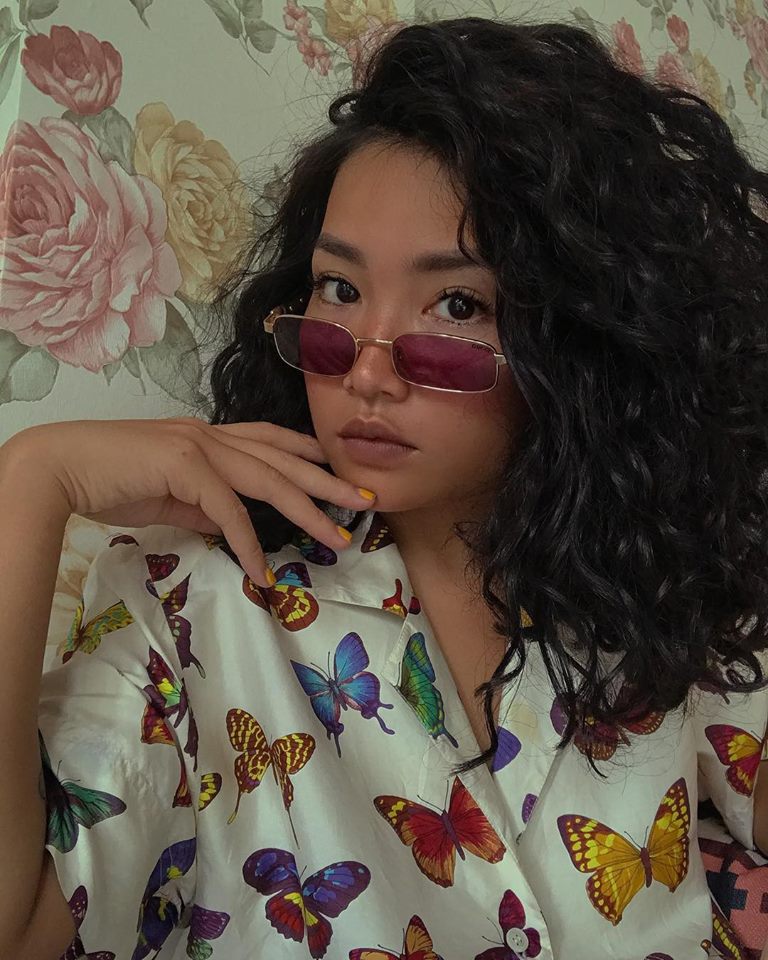 Kết hợp chiếc kính này với mái tóc xù và áo pijama họa tiết, cô bạn này lại đem đến một hình ảnh mang hơi hướng retro.