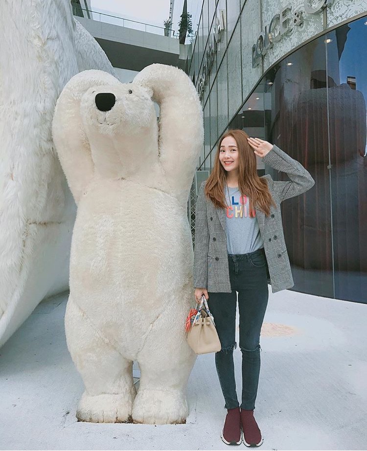 Kỳ Duyên đang có những ngày tận hưởng thời tiết đẹp tuyệt ở Hà Nội. Vì trời khá lạnh nên ngoài áo thun, Duyên còn khoác áo dạ ấm áp. Cô nàng không quên diện kèm đôi loafer Gucci thêu đang rất được Duyên cưng chiều thời gian qua.