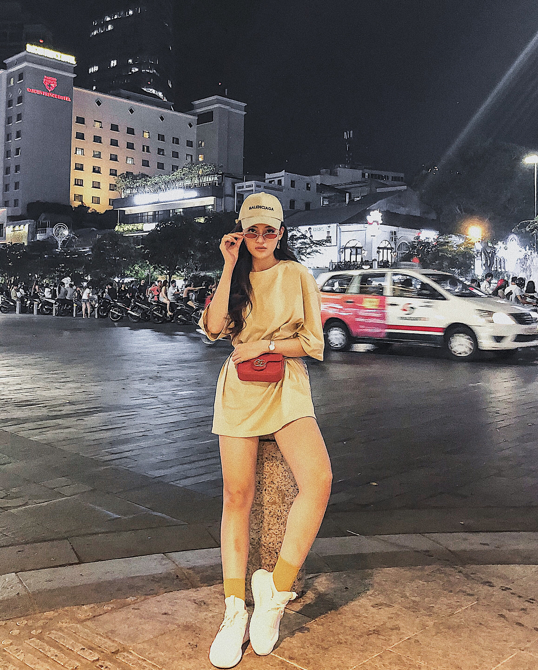 Bảo Anh khoe street style khá chất gồm áo thun phom rộng và quần thể thao khi đang vi vu tại Thái Lan. Trên trang cá nhân của mình, nữ ca sĩ chia sẻ, tuy đang bị thủy đậu phải che kín mặt, nhưng nhất định phải đến để thưởng thức tour show của ca sĩ Bruno Mars.
