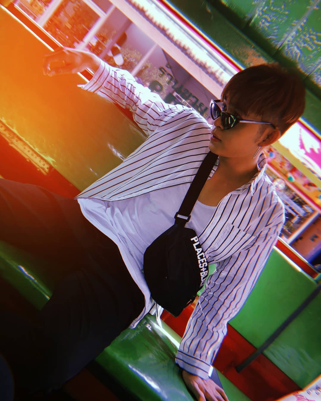 Tận hưởng những ngày nghỉ lễ tại xứ chùa vàng còn có anh chàng Jun Phạm. Set đồ trẻ trung gồm áo thun, áo sơ-mi khoác ngoài và quần tây đen là sự lựa chọn của anh khi đi du lịch nước bạn.
