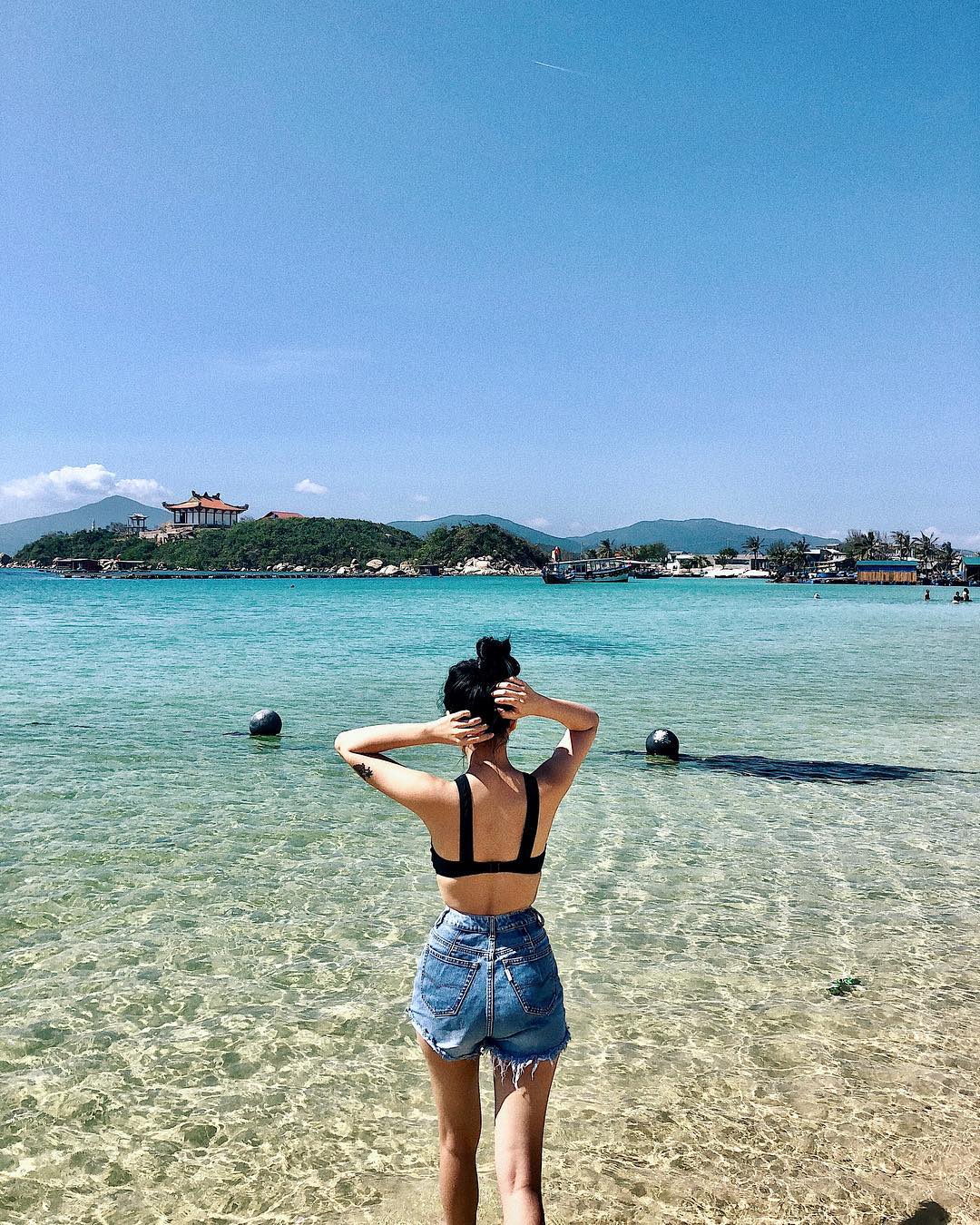 Dù chỉ là chụp sau lưng nhưng Tú Hảo vẫn khiến người đối diện không thể rời mắt với tấm lưng ong cùng vòng ba căng tròn. Bộ đôi áo croptop cùng short cạp cao mà cô nàng đang diện cũng góp một phần không nhỏ trong công cuộc khoe dáng của quán quân The Face.