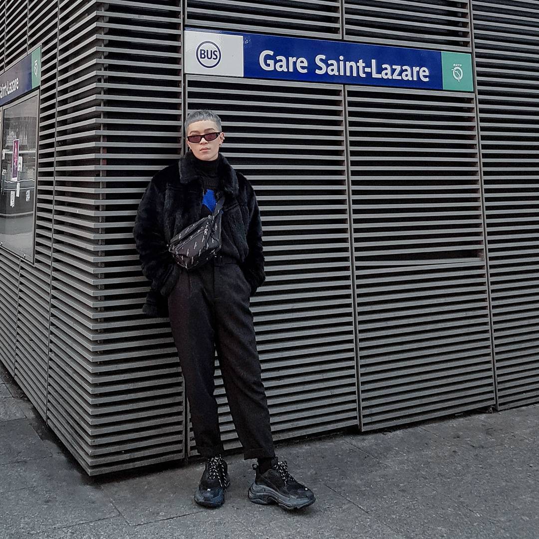 Dù bận rộn dự show tại Paris nhưng Kelbin Lei vẫn không quên cập nhật hình ảnh street style lên trang cá nhân. Trong bức ảnh khoe outfit mới nhất, anh chàng lựa chọn chưng diện cả cây đen với áo khoác lông, hoodie chui đầu cùng giày Balenciaga Triple S black - món hàng hiệu đắt đỏ mà chàng stylist vừa mua được.