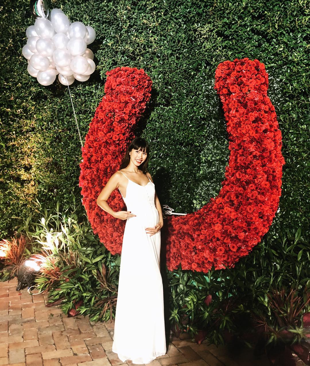 Mang bầu hơn 4 tháng, Hà Anh vẫn tự tin khoe vóc dáng với tông trắng. Siêu mẫu có những số đo đẹp nhất, nhì showbiz diện chiếc váy hai dây với phần cổ sâu, khoe vòng một lấp ló. Nhiều người nhận định rằng, nếu không có chiều cao chuẩn thì khó ai có thể diện đẹp chiếc váy dài như vậy.