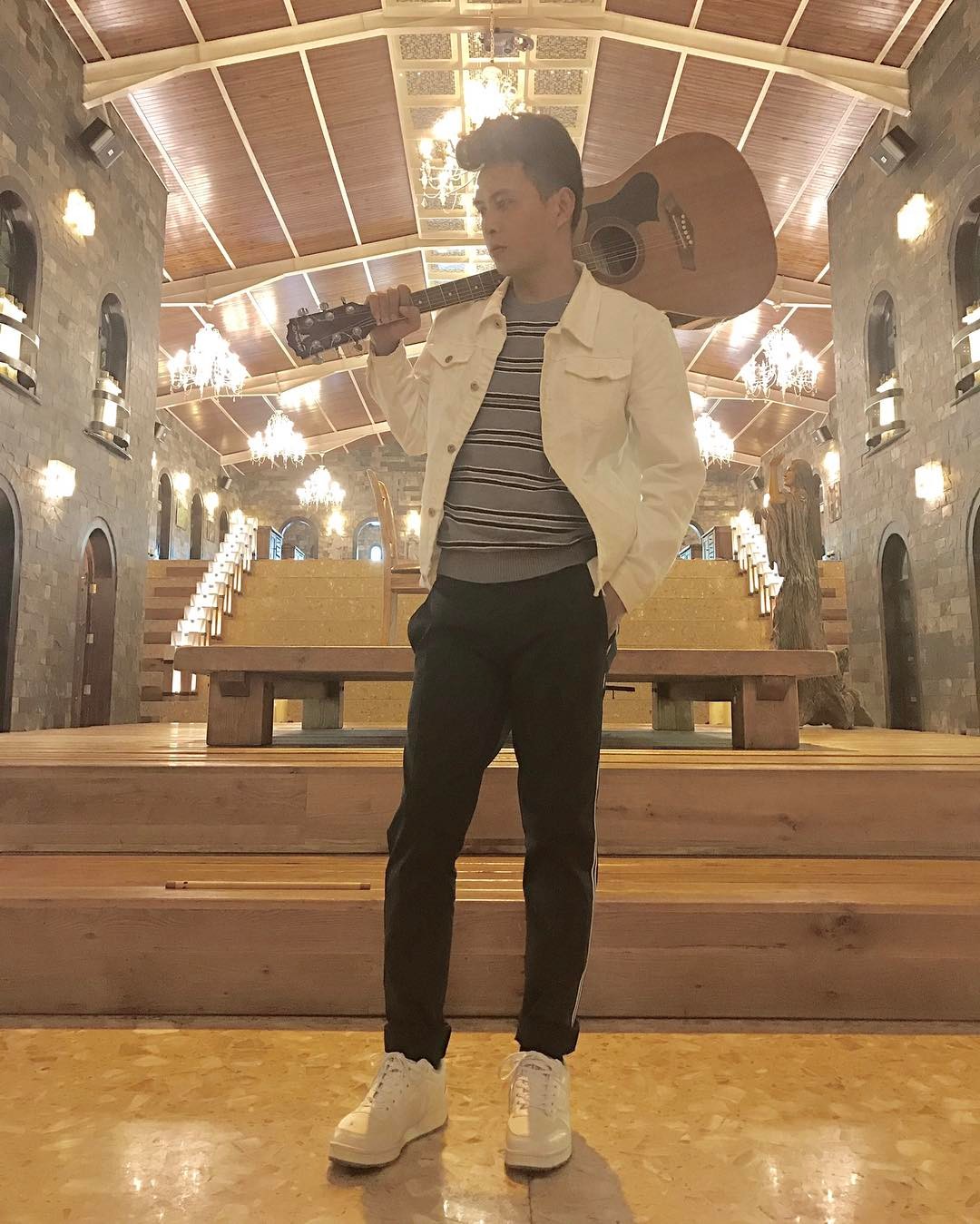 Ca sĩ Hồ Quang Hiếu khá trẻ trung khi diện áo thun kèm sơ mi, quần thể thao và giày sneaker. Tuy nhiên, nếu giọng ca “Không cảm xúc” tinh ý hơn, lựa chọn áo trong và ngoài cùng tông thì set đồ sẽ được nâng tầm hơn rất nhiều.
