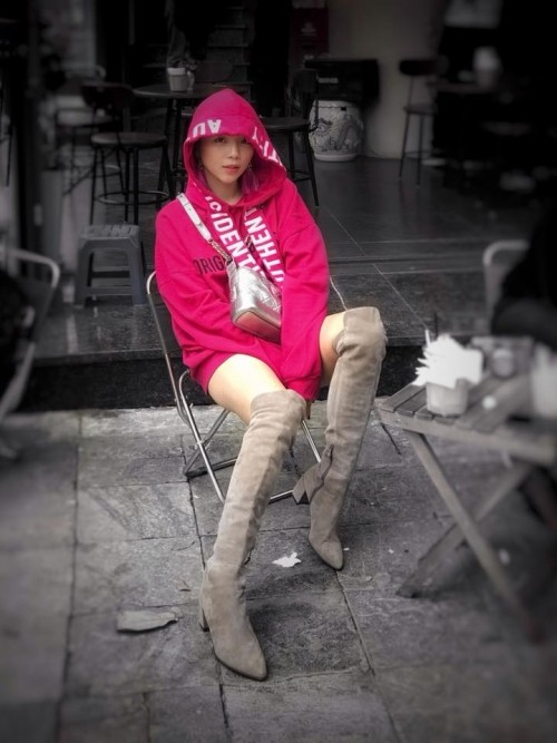 Những ngày sau đó, giọng ca “Ngày mai” lại tiếp tục lựa chọn tông màu hồng đỏ khi xuống phố. Nữ ca sĩ diện áo hoodie phom rộng cùng giày boots cao cổ, phối cùng túi đeo chéo chất liệu ánh kim làm điểm nhấn.