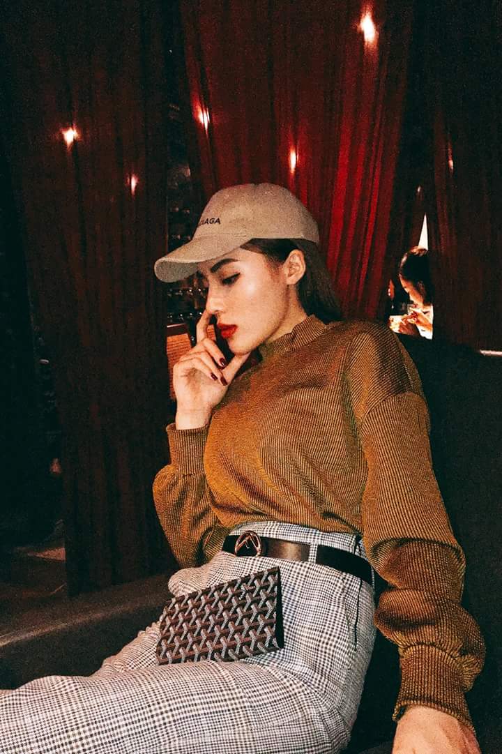Từng tuyên bố sẽ theo đuổi hình tượng một nàng hậu thời trang, một It Girl của giới trẻ, Kỳ Duyên đang dần dần chứng tỏ điều đó với giới mộ điệu. Xuống phố ngày 30 Tết, người đẹp lựa chọn set đồ gồm áo sweater và quần kẻ đang cực “hot”. Ngoài ra, cô nàng cũng không quên nón lưỡi trai của Balenciaga cùng set giày và ví cầm tay đến từ nhà mốt Gucci nhắm tăng điểm đắt giá.