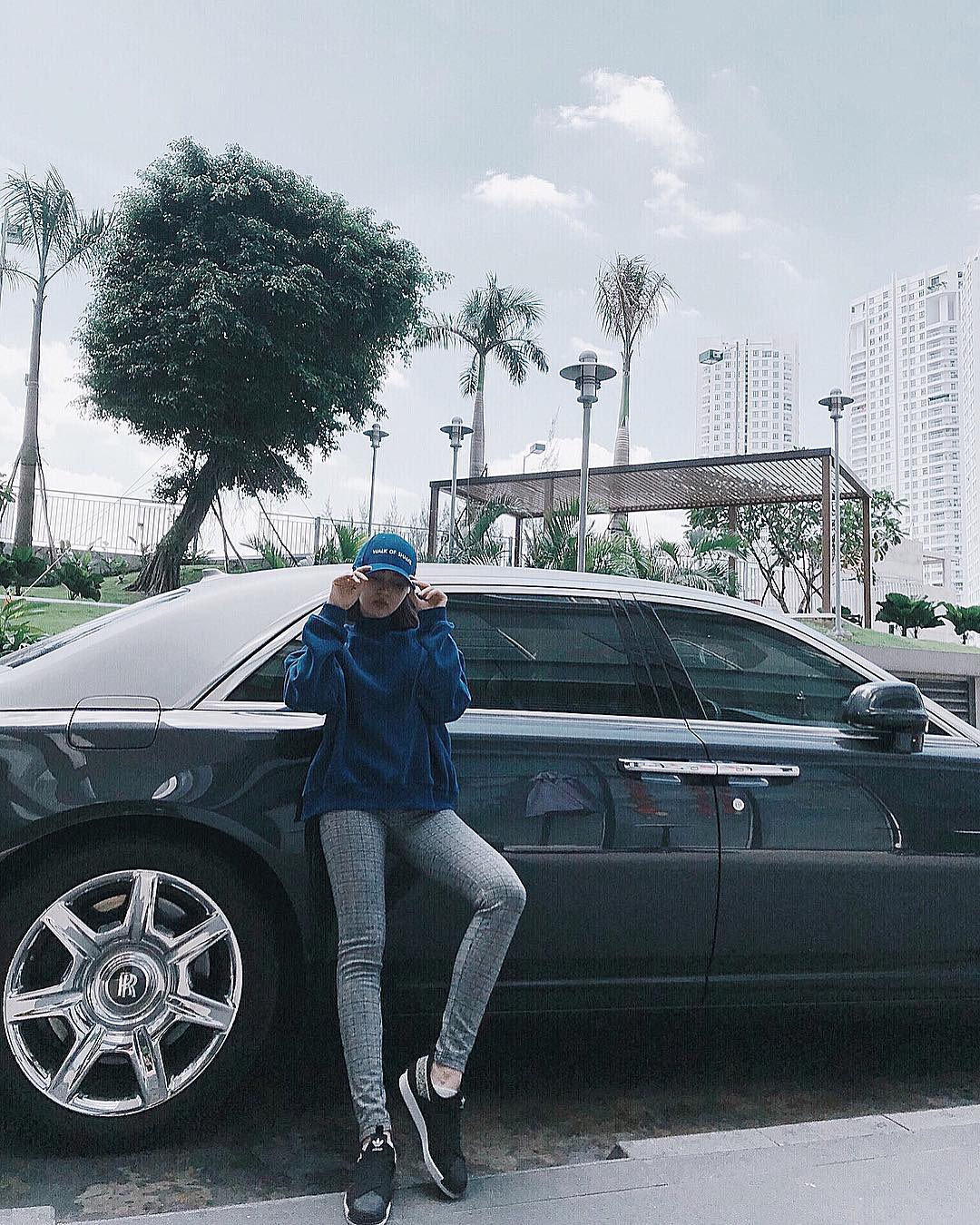 Áo sweater cùng mũ tông xanh phối cùng quần skinny là sự lựa chọn của Bảo Anh khi xuống phố tuần qua.