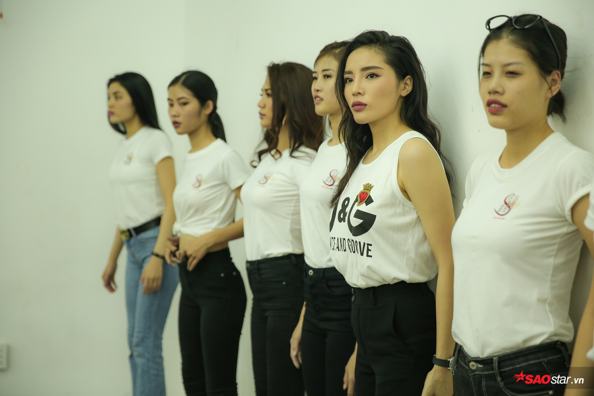 Với sự hướng dẫn của Minh Triệu, Kỳ Duyên còn tự tay chỉnh vai, lưng của các thí sinh sao cho thật thẳng.