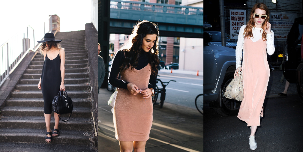 Thực chất slip dress là kiểu váy ngủ, bắt đầu trở nên thịnh hành trong vòng thời gian ngắn trở lại đây. Kiểu váy hai dây cổ chữ V rất được lòng các quý cô New York bởi sự thoải mái và còn che khuyết điểm rất ok ! Dù gọi là váy ngủ nhưng họ có thể mặc ra đường với trang phục rất chỉn chu, kết hợp chủ yếu với giày bệt, sandal.
