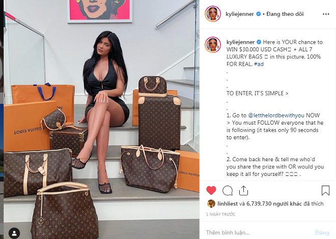Với 149 triệu người followers của cô nàng thì xác suất để fans hâm mộ giành được giải thưởng xa xỉ túi hiệu và tiền mặt này đều rất sát sao.