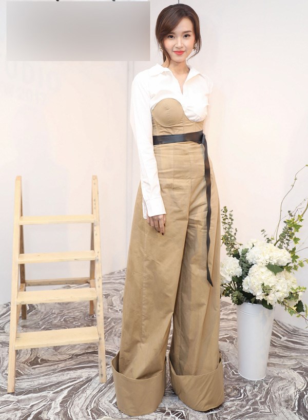 Sơ mi trắng kết hợp với quần ống rộng sẽ là một sự kết hợp khá tuyệt vời. Thế nhưng dường như, Midu đã chọn nhầm size quần, trông cô như bơi trong chiếc quần nhăn nhúm.