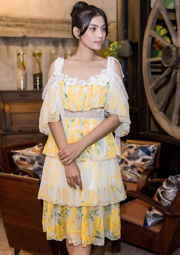 Không biết là thời đại nào rồi mà chân dài Trương Thị May còn diện kiểu váy bánh bèo sến sẩm này nữa! Hơn thế, nhìn chất liệu và form dáng chiếc váy chẳng khác gì đồ chợ.