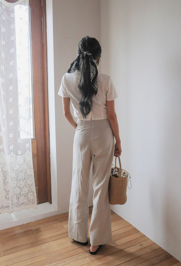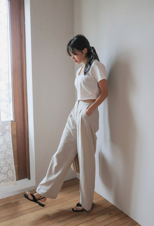 Trang phục chất liệu xô/lanh với gam màu sáng