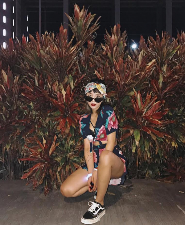 Cô còn phá cách hơn khi kết hợp cả cây hoa với sneaker, bạn thấy đấy turban của thì hiện tại đã được các cô nàng kết hợp vô cùng sáng tạo trên bộ outfit của mình.