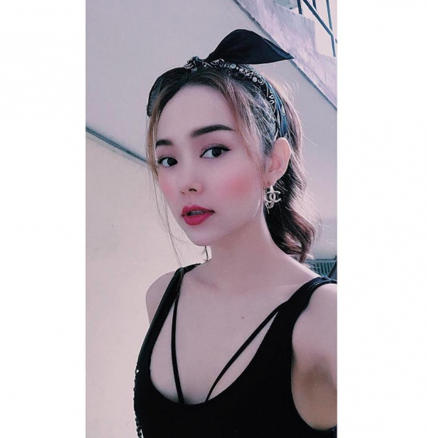 Minh Hẳng lại biến tấu bằng kiểu buộc nơ xinh xắn, khá hợp với phong cách của cô.
