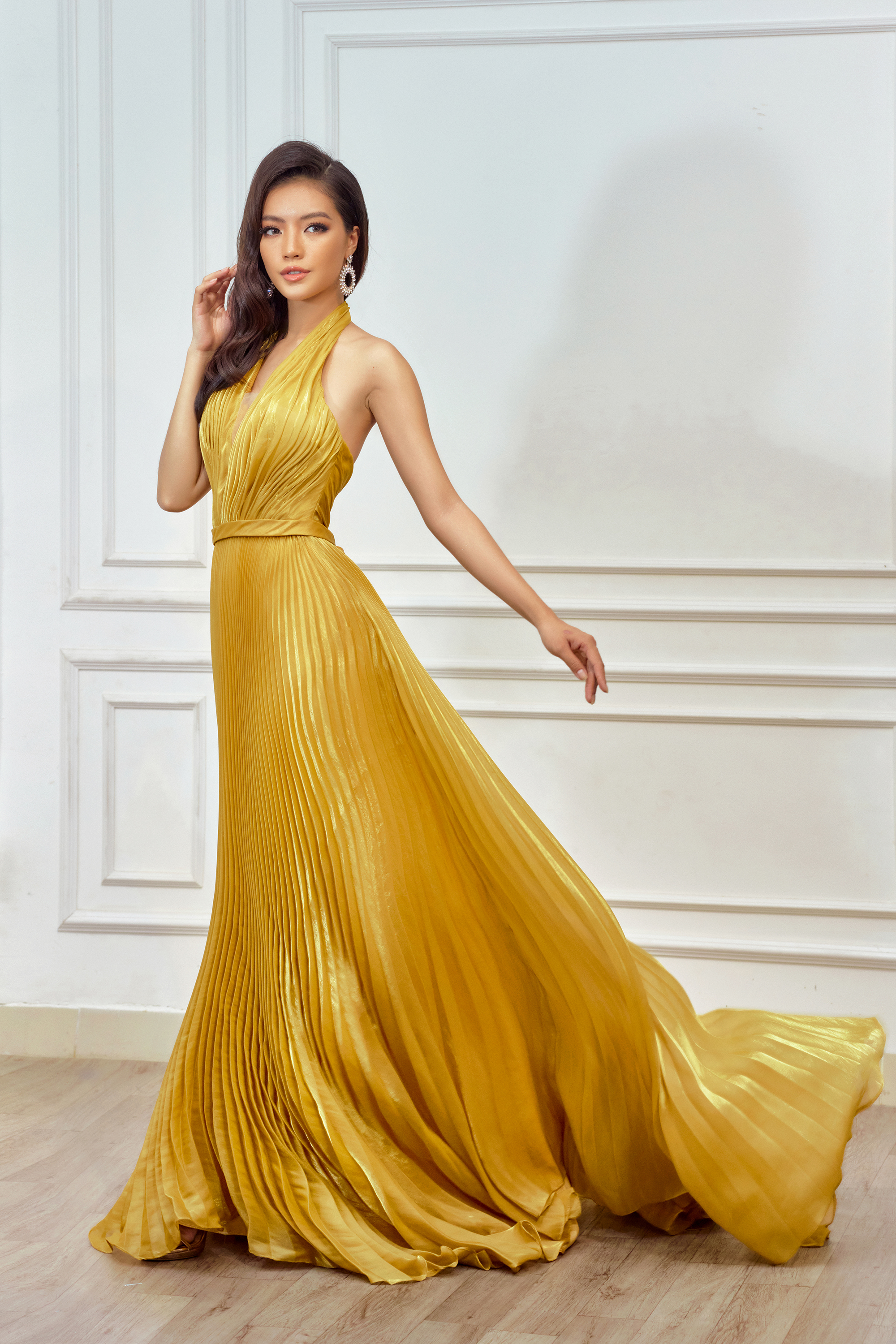 Ngoài họa tiết, kiểu dáng cũng là một điểm nhấn ở bộ sưu tập này chính là Lâm Bích Tuyền, gương mặt đình đám trong làng Hoa hậu với những thành tích đáng nể vừa qua.
