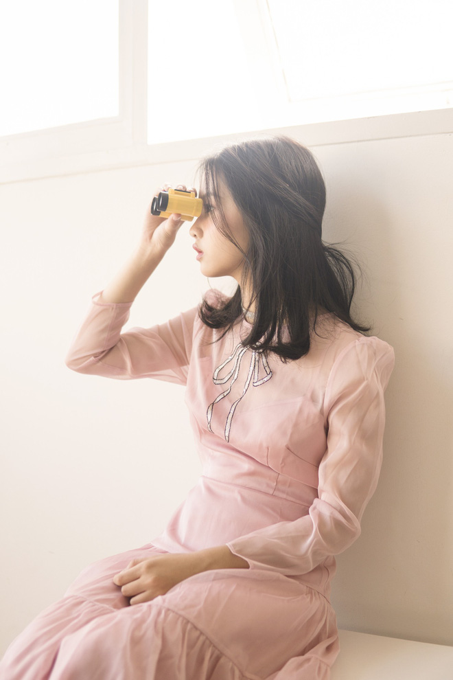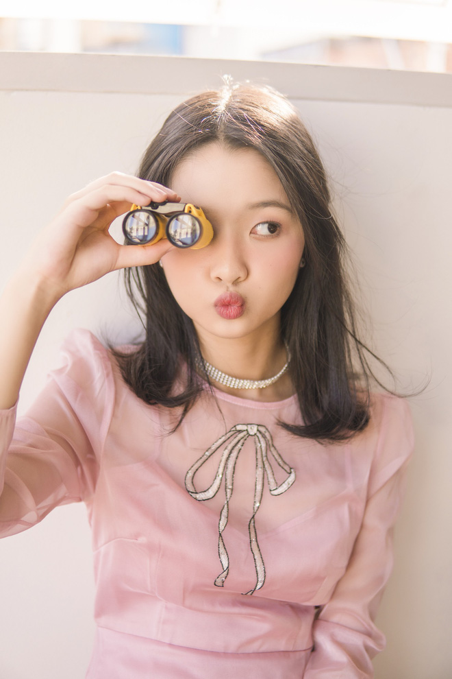 Với mái tóc thẳng được đánh rối cùng những cách tạo dáng, biểu cảm hết sức tự nhiên giúp Thanh Mỹ có được những hình ảnh đẹp nhất trong trang phục ngọt ngào.