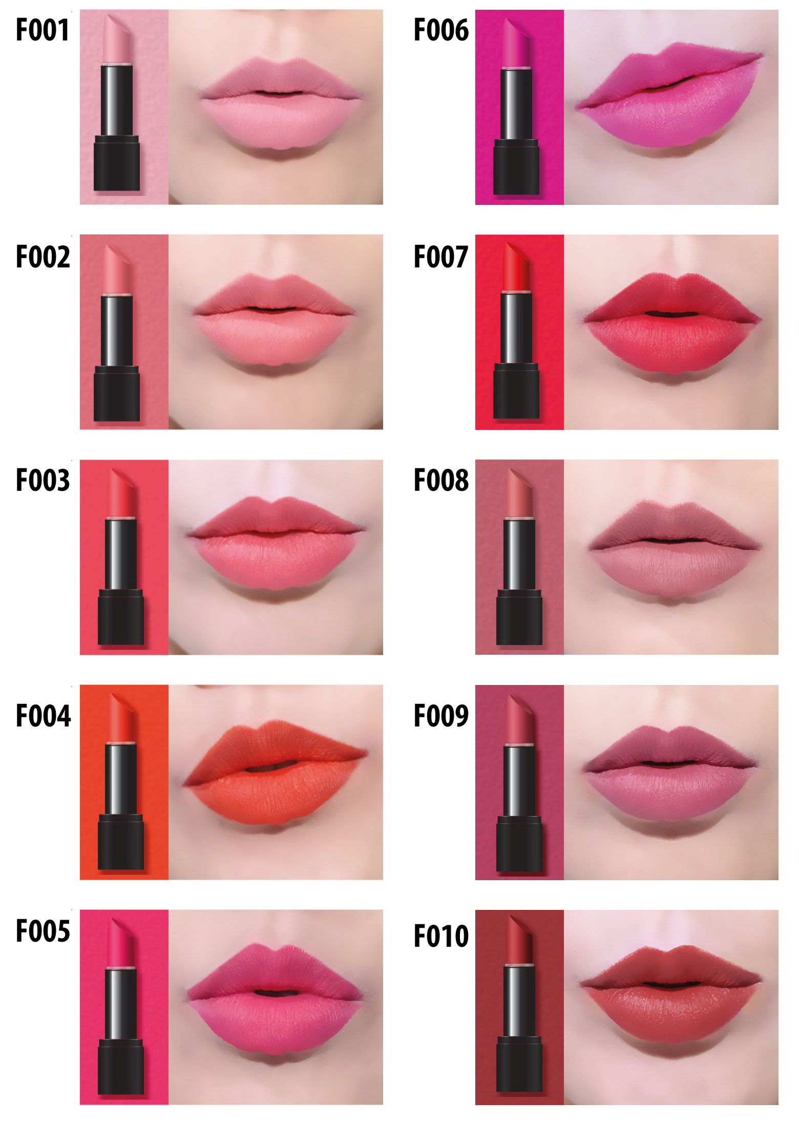 Bảng màu son bạn có thể tham khảo để có được vẻ đẹp như búp bê với mái tóc này: