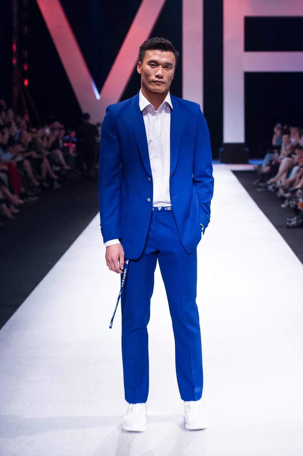 Bùi Tiến Dũng tự tin catwalk trong tiếng hò reo của khán giả.