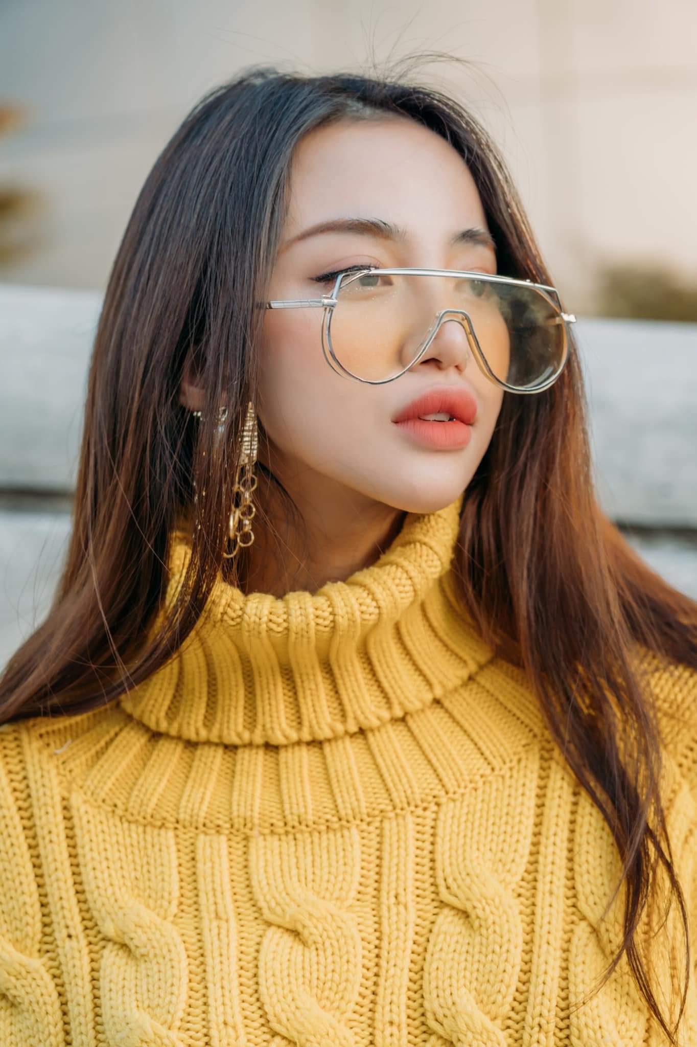 Chiếc áo len cổ lọ freesize không hề khiến người mặc bị “nuốt người”, ngược lại càng tạo thêm cảm giác ấm áp, phù hợp với tiết trời vào thu.