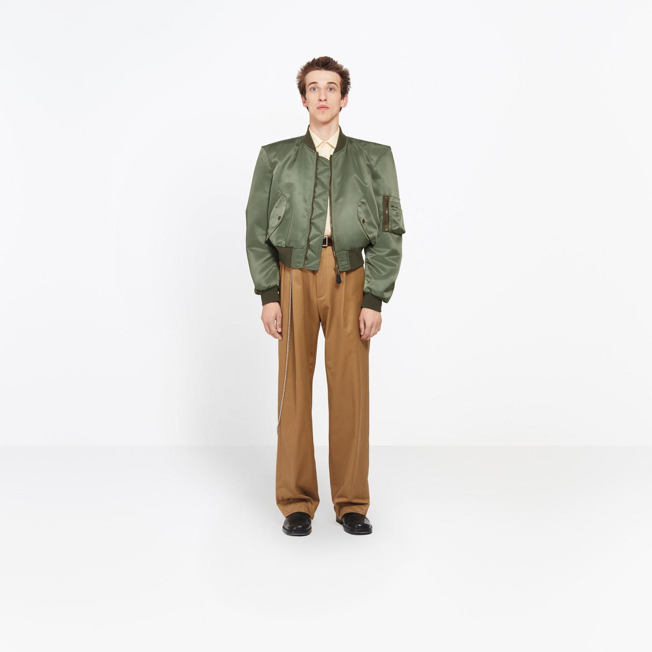 Cách đây ít phút, Sơn Tùng tiếp tục thay một bộ đồ thứ 2, đây là outfit mà anh chàng tự stylist. Được biết chiếc áo bomber jacket xanh quân đội của thương hiệu Balenciaga với giá bán 1.445 Euro khoảng hơn 35 triệu đồng.