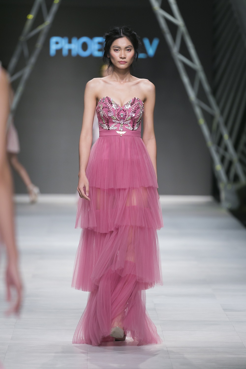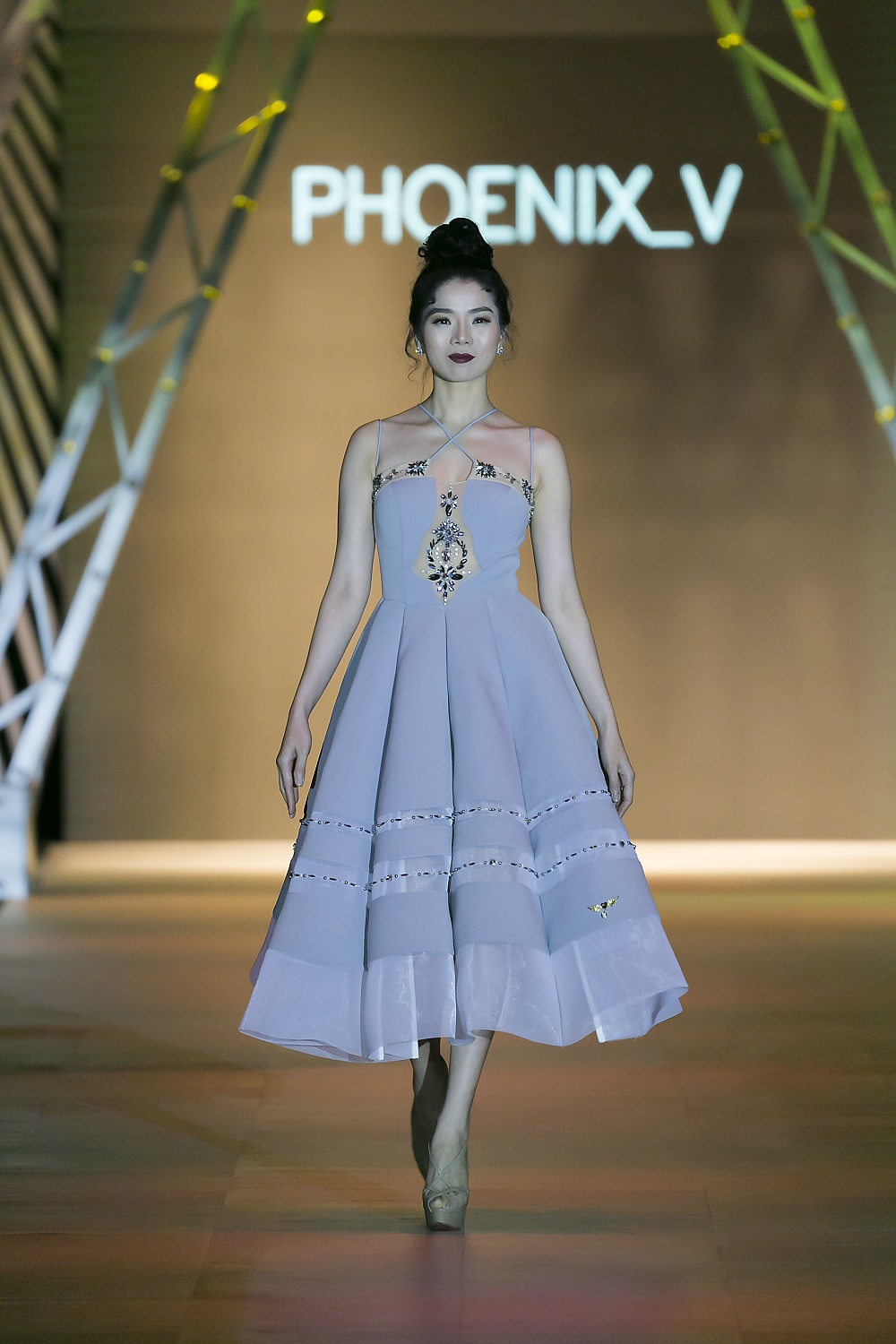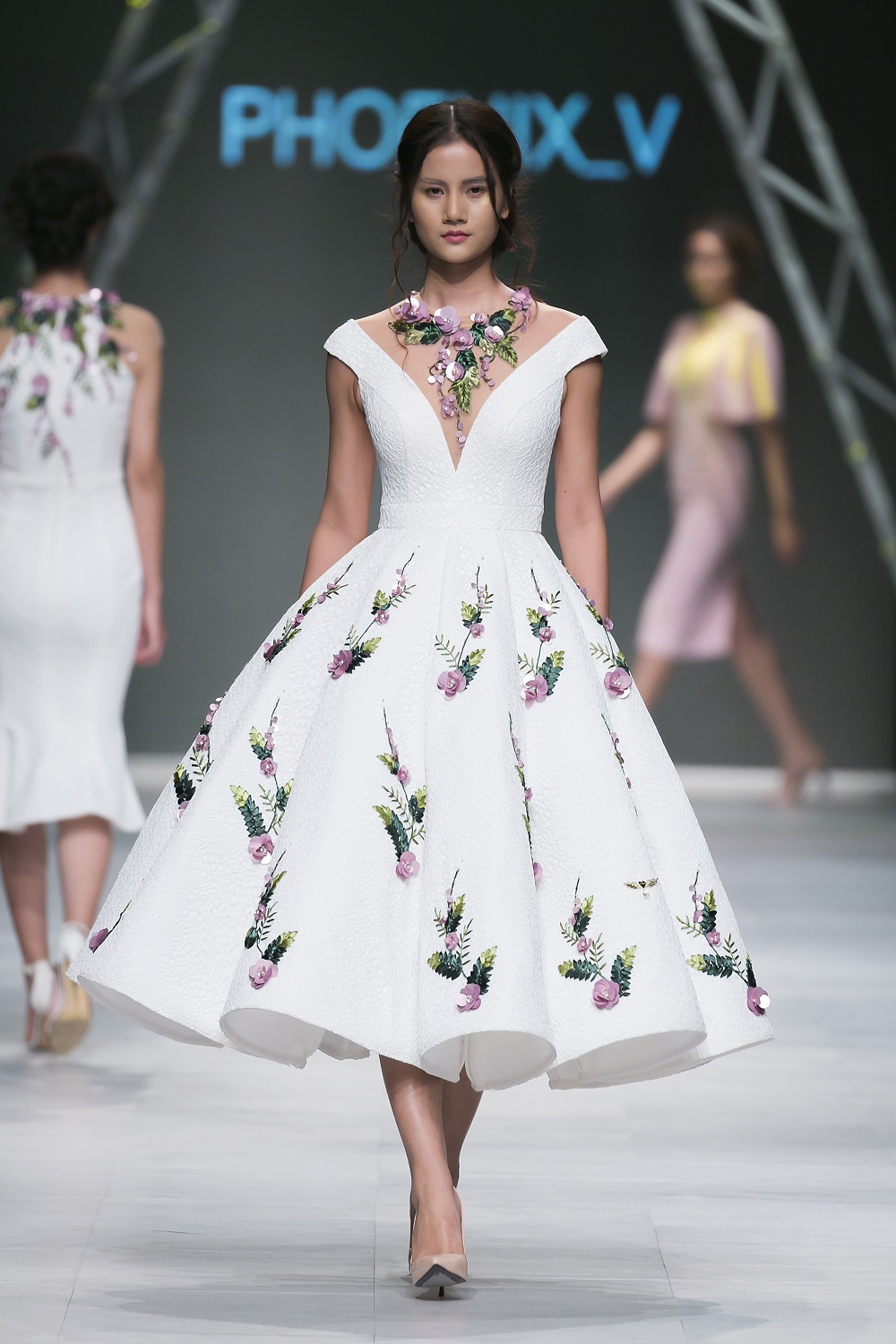 Vận dụng thế mạnh là phương pháp đính kết 3D cầu kì, thêu hoa ruy băng và sử dụng những đường cut-out gợi cảm, BST “Phượng Hoàng Việt” với hơn 30 thiết kế sang trọng, lịch thiệp và đẳng cấp.
