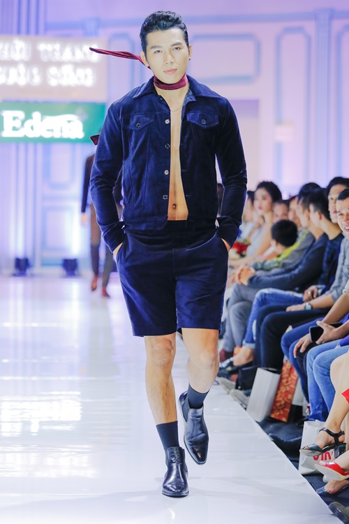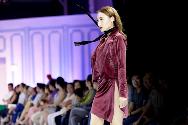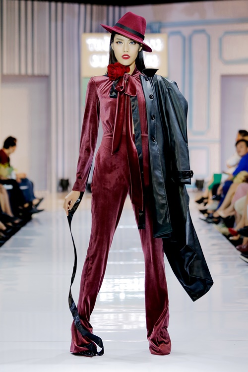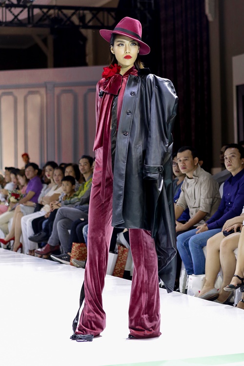 Tựa như một nữ chiến binh thực thụ, trong trang phục được cấu tạo từ chất liệu nhung - hot trend của mùa mốt năm nay, Lan Khuê bước ra sàn diễn đầy kiêu hãnh. Một chút sắc lạnh thường thấy, một chút cá tính của chiếc áo trench coat bằng da, một chút mềm mại của vải nhung… tất cả tạo nên diện mạo hoàn chỉnh nhất cho cô.