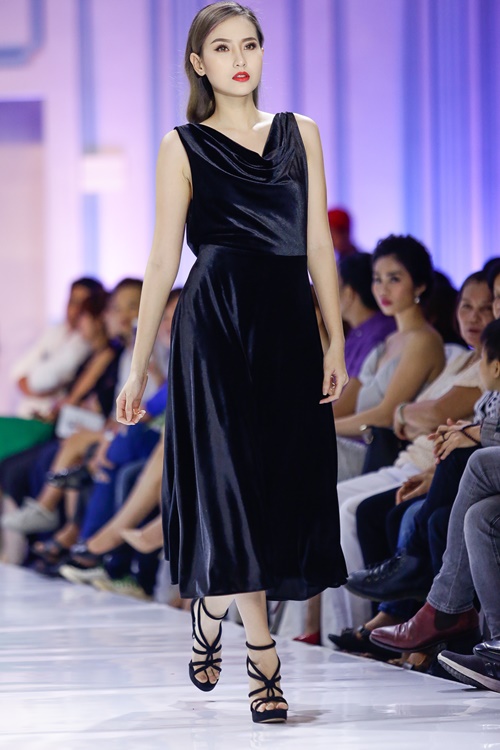 Hoa hậu Thu Thảo chọn thiết kế váy vải nhung đen khoe nước da trắng nõn.