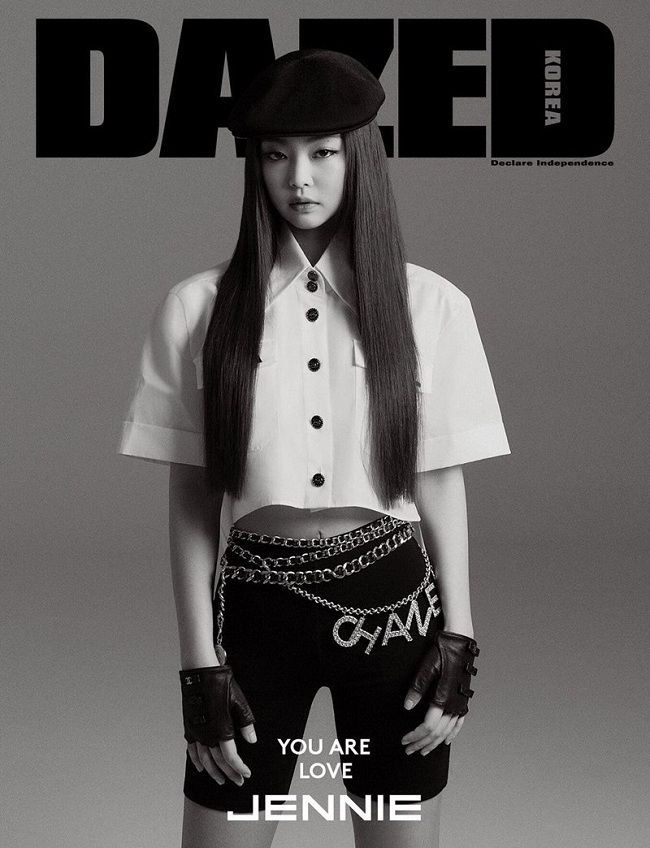 Jennie (Black Pink) đã khoác trên mình chiếc áo này khi chụp hình bìa báo tạp chí của Hàn Quốc